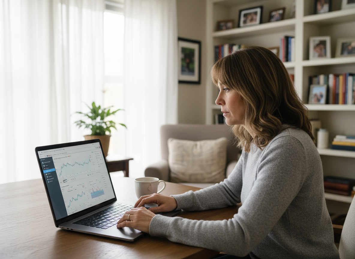 Their day begins early: checking global markets (Asia open), news, analytics. Possibly they have a full-time job or have moved into part-time/trading as primary income or serious hobby.